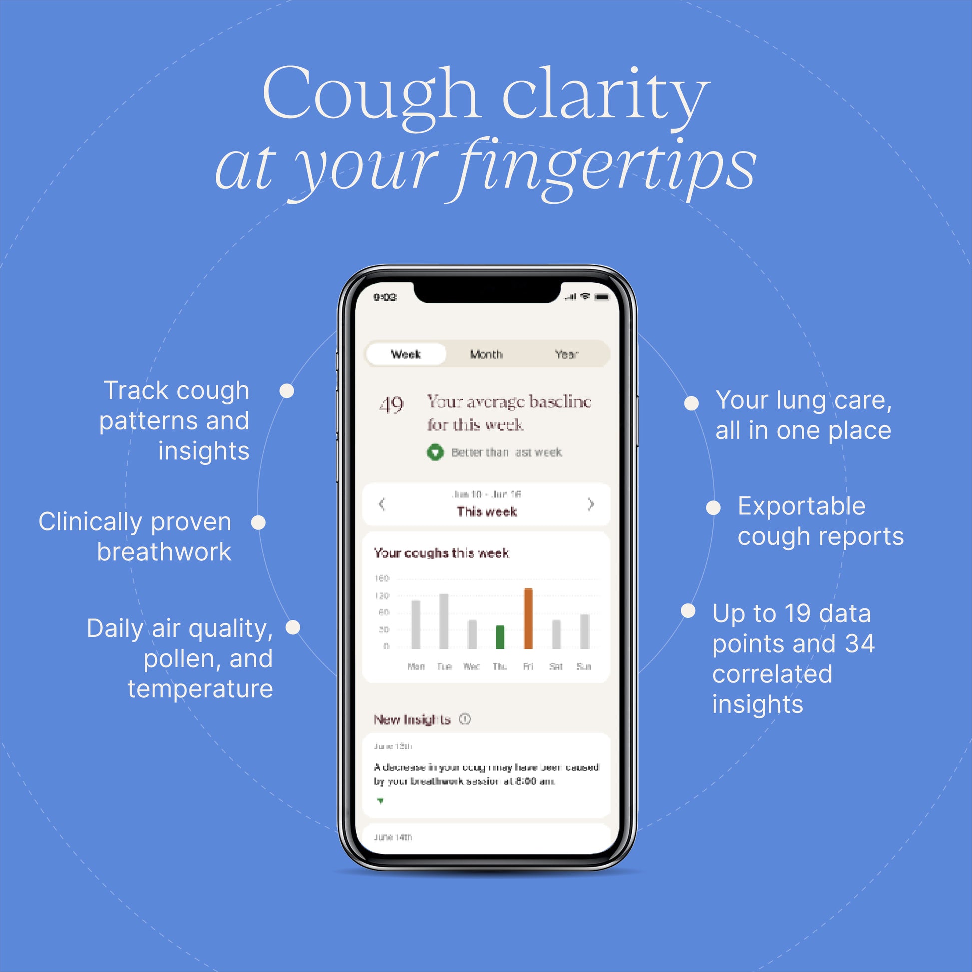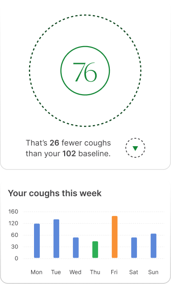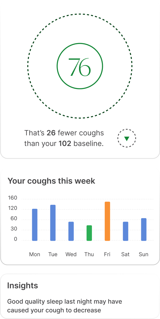 Introducing the only continuous cough tracker that measures your cough and delivers insights that matter most to your lung health –