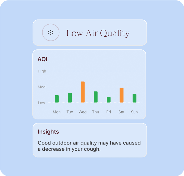 Have better-informed conversations related to your lung health with personalized data that sheds light on key metrics like cough frequency and patterns.
