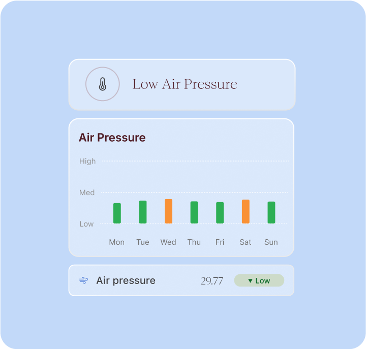 Understand that day’s air quality, pollen, temperature, humidity, and air pressure.